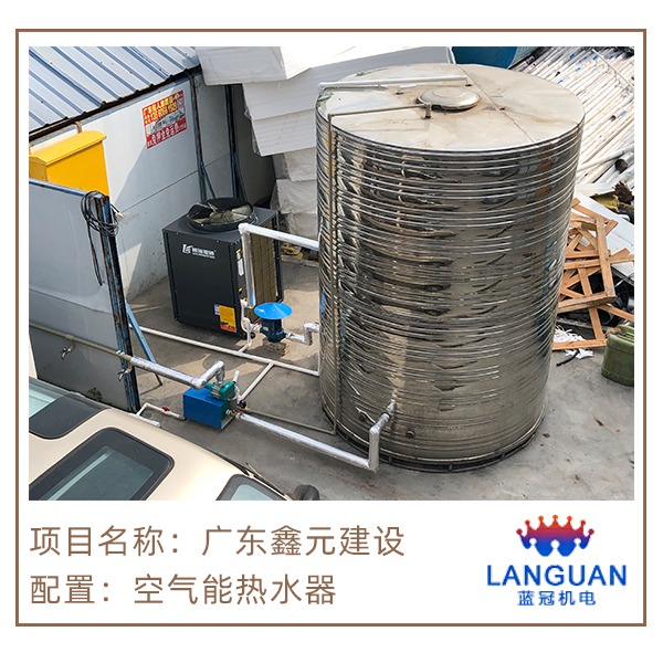 2、在工地宿舍旁边空地安装:1台5P空气能热泵,1个保温水箱,1台能循环泵,配置部份循环管道及控制电箱等,整个系统全自动控制。