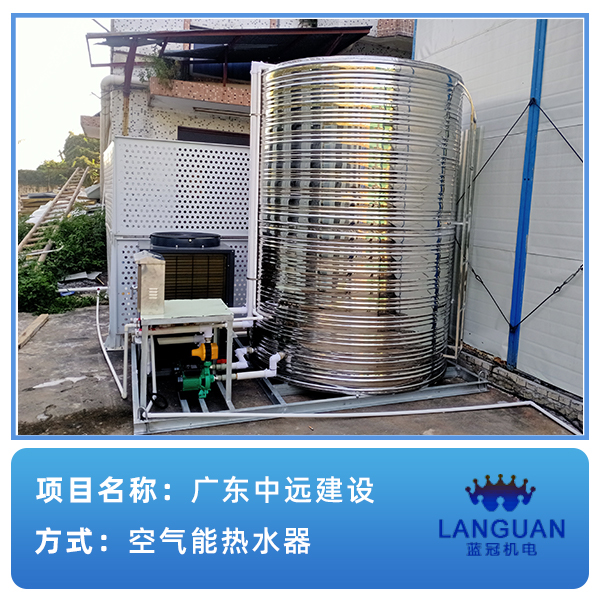 2、在工地宿舍旁边空地安装:1台5P空气能热泵,1个保温水箱,1台能循环泵,1台加压泵,配置部份循环管道及控制电箱等,整个系统全自动控制。